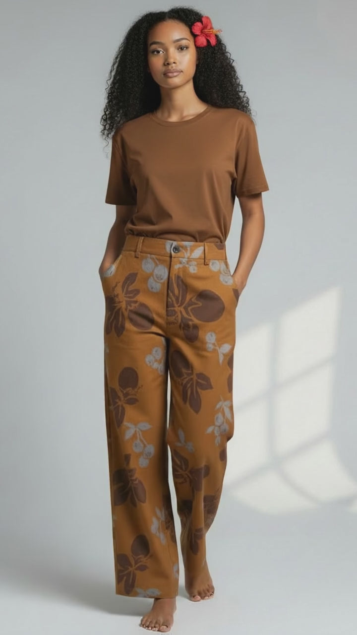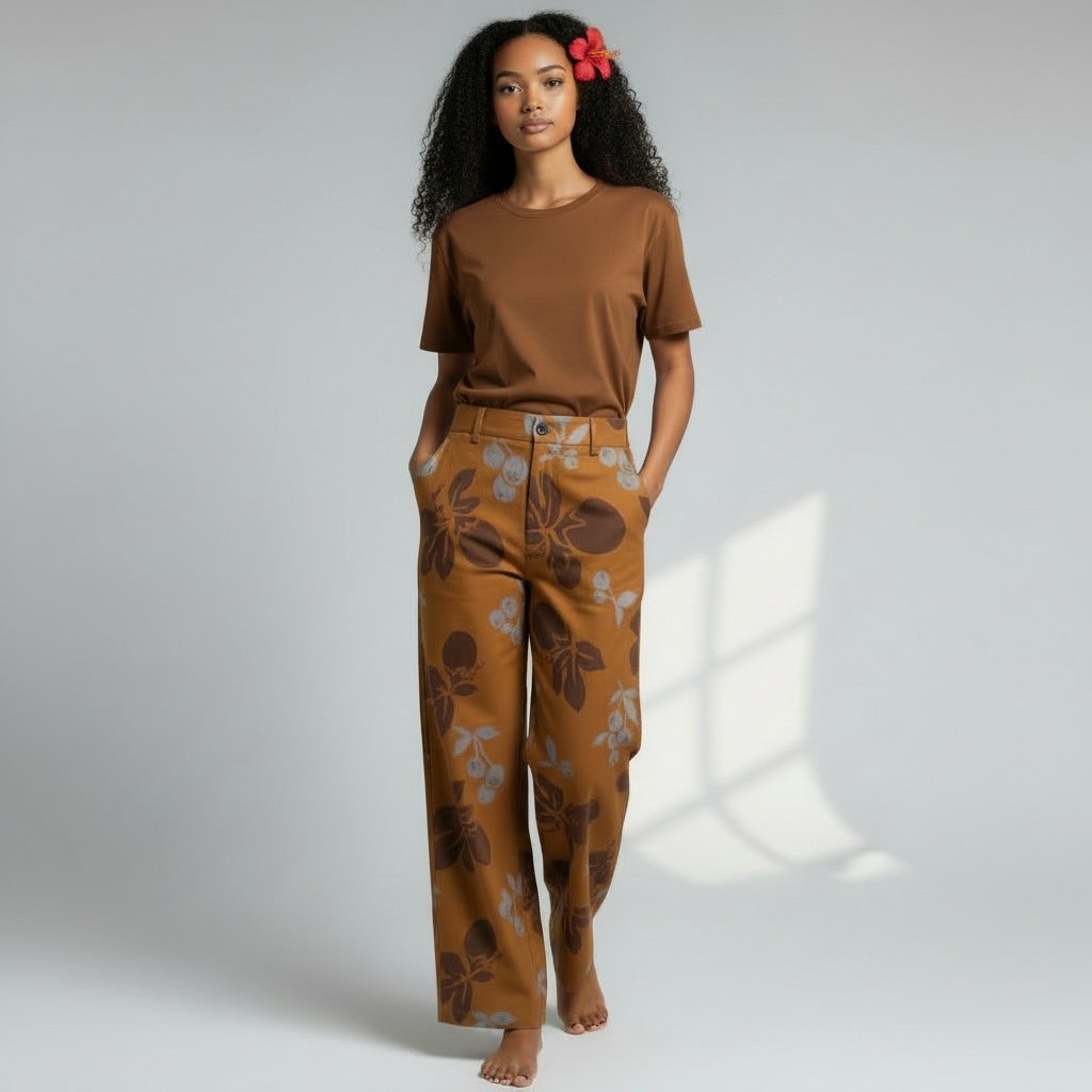 The new Betsy Pants from the Lychee Liliko'i Fall '25 collection offer a supportive fit with an elastic waist and button closure, combining ease and style. Featuring a retro, vintage-inspired Lychee Liliko'i print, these pants bring a nostalgic yet fresh look to your wardrobe while ensuring comfort throughout your day.
