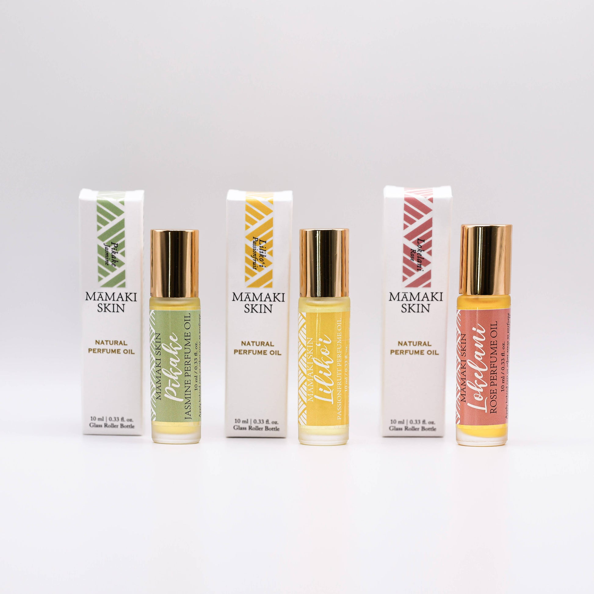 Our perfume oils are “therapeutic” because you can use as more than just a beautiful scent. The mamaki extraction makes it charged with antioxidant (anti aging) properties, and rose essential oil has a myriad of skin-smoothing benefits.