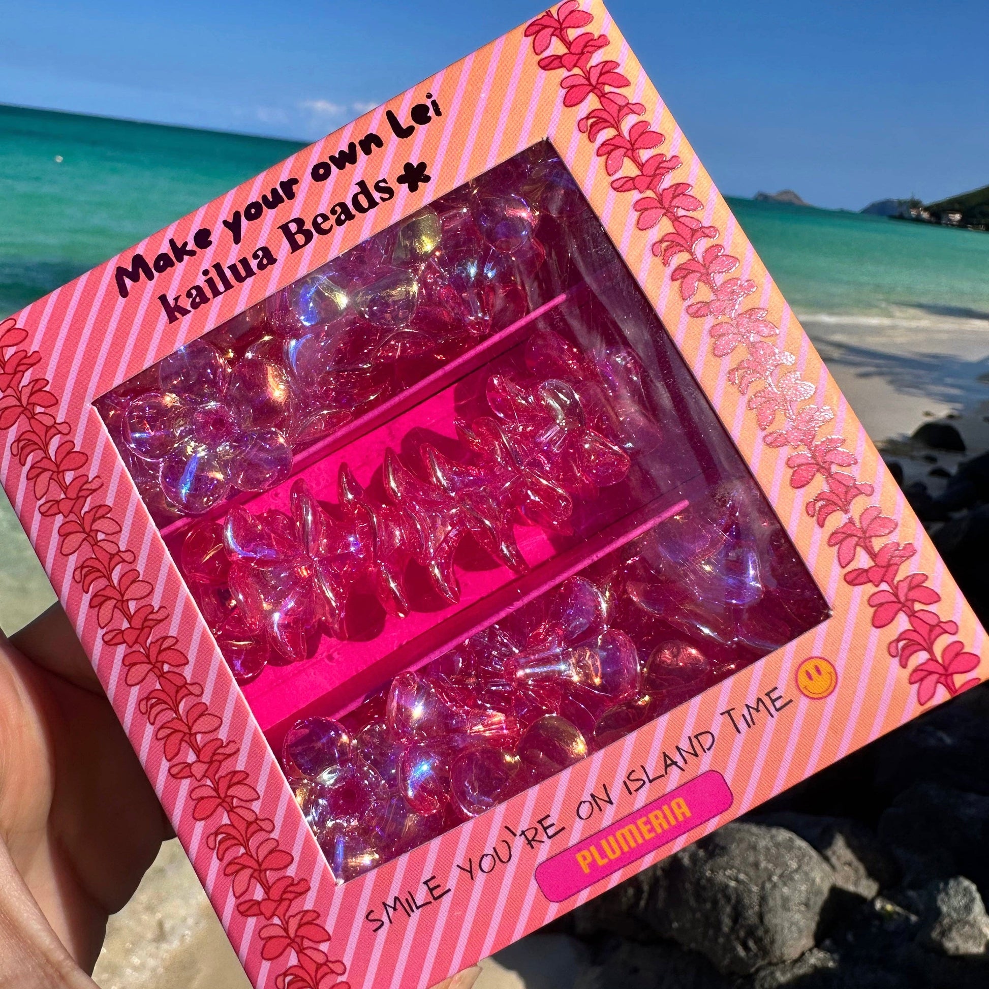 Beautiful Plumeria acrylic beads with an electroplated coat to make them extra shiny just like you! There are about 60 beads that make a lei perfect size for kids, if you want to make one for adults please buy 2 kits. an elastic thread is included.
