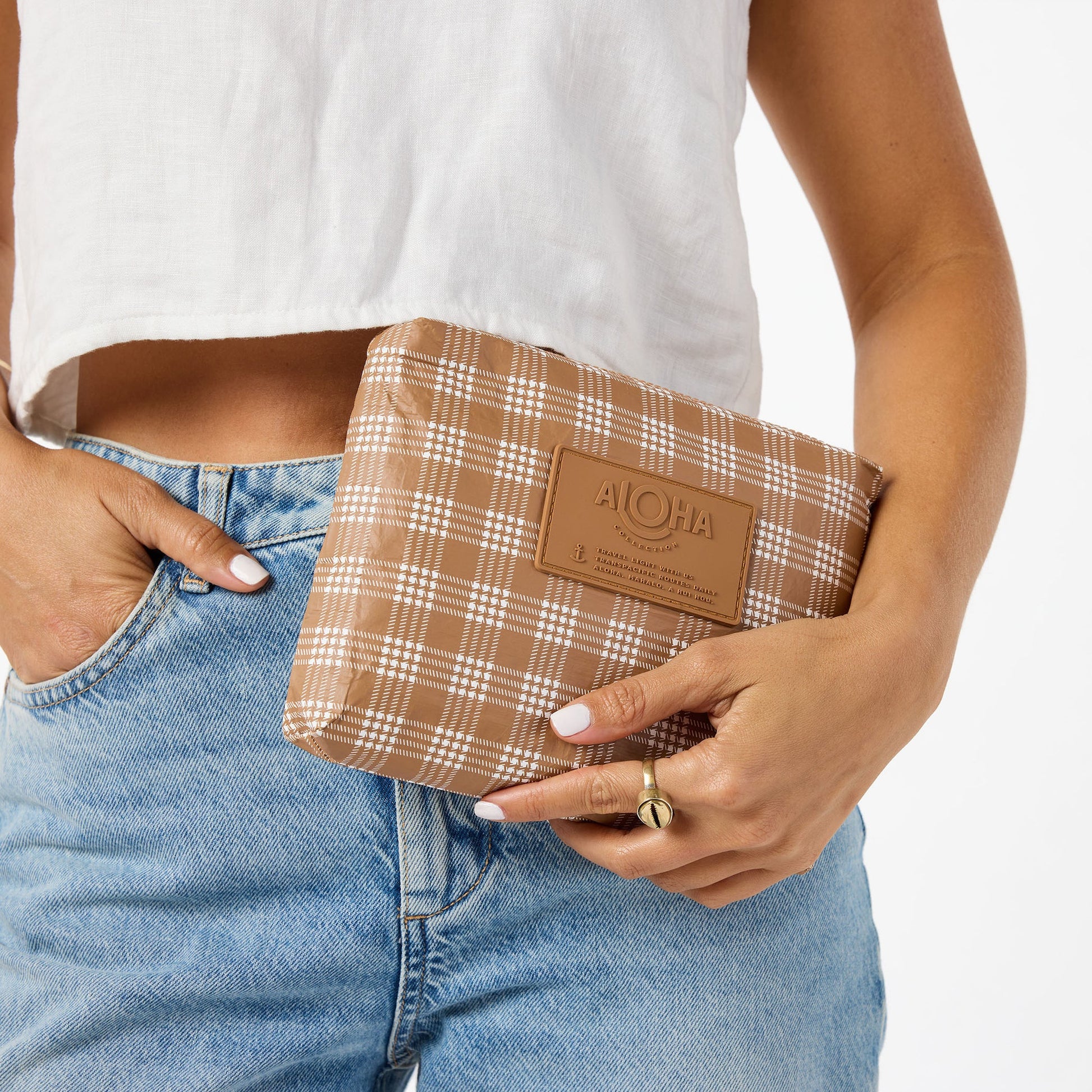 - SPLASH-PROOF® is the next best thing to waterproof! Your belongings will be protected from a light splash, light rain, or a cocktail spillage, but please do not submerge your ALOHA Collection pouch with belongings inside. The zipper and seams of ALOHA Collection bags are not watertight.
